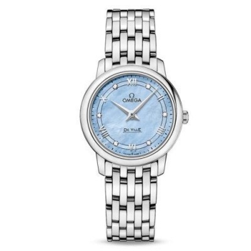 收藏商品 OMEGA/欧米茄瑞士手表 碟飞系列镶钻石英机芯女士腕表 钢带蓝盘
